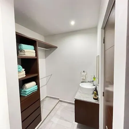 La cucina completamente attrezzata offre agli ospiti un microonde e un frigo, servizi per la preparazione di tè/caffè per garantire la massima comodità. L'aeroporto Internazionale di Cancún dista 15 km da quest'appartamento.
